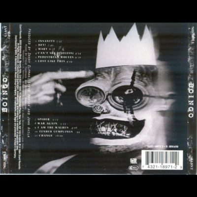 'Twas the story of the band's most curious album. This edgy grungefest shows a very surprising deviation from Boingo's expected Oingoness, and it's very evident in its 15 minute songs and incredibly subtle lyrics.